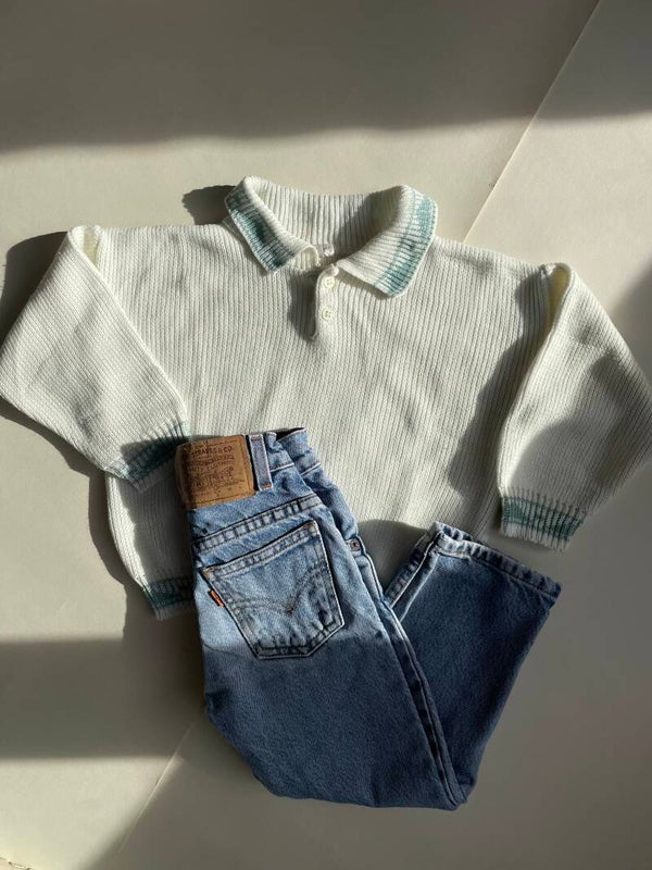 Vintage trui met kraag en knoopjes van 100% acryl. 3 jaar staat erin, maar ook leuk oversized va.2 jaar