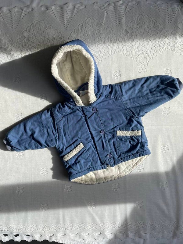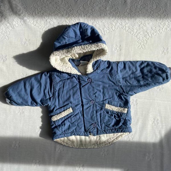 Gevoerd vintage jasje, teddy in capuchon. Maat 68. Ideaal voor de herfst.