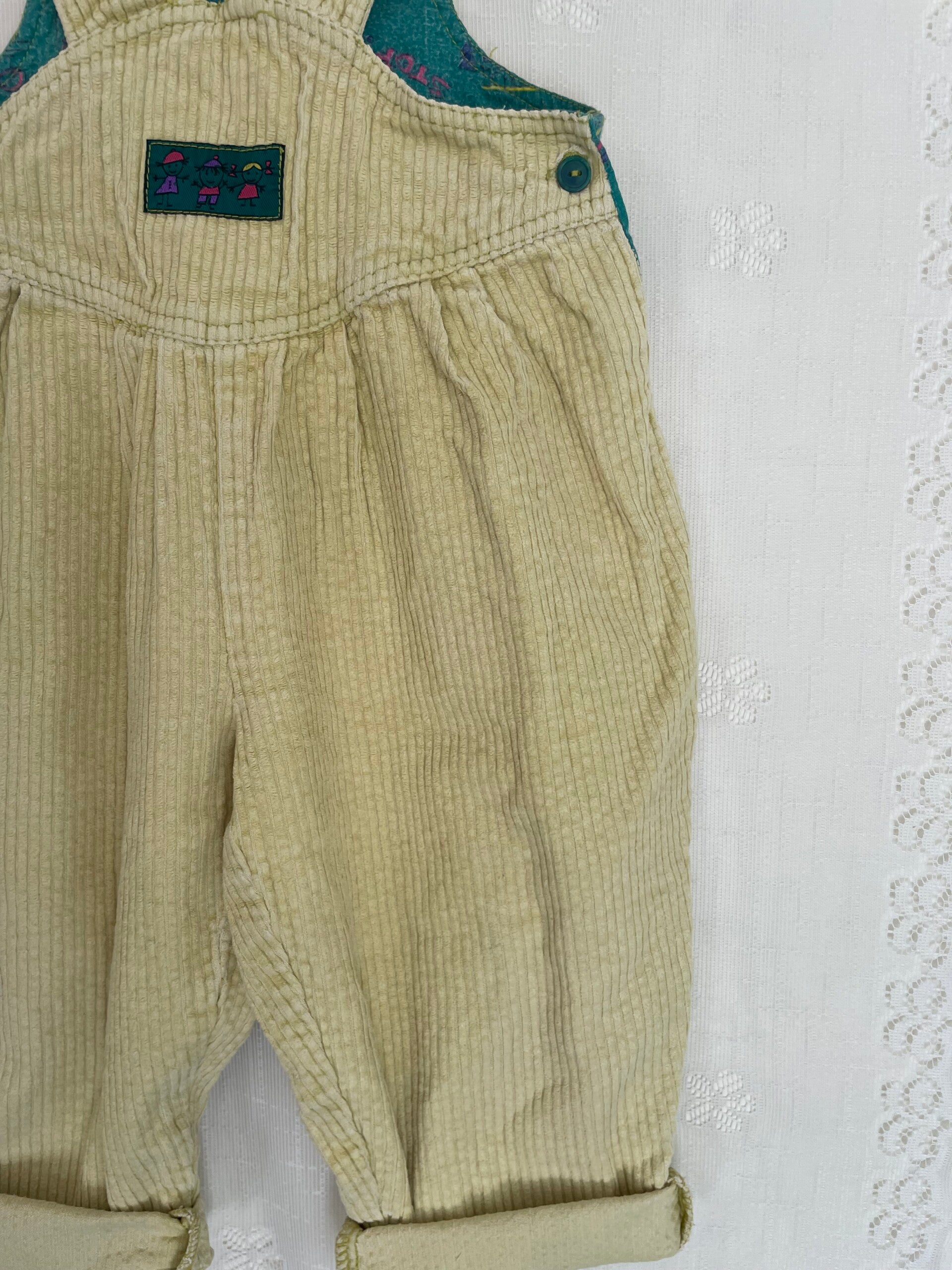 Prachtige vintage zacht geel 90s tuinbroekje van ribstof.