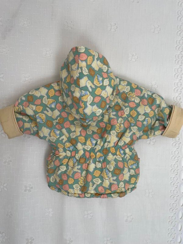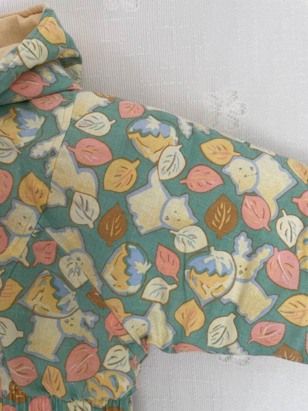 Vintage warm jasje met herfstprint. Maat 6m maar valt groot, kan rond 1 jaar gedragen worden.