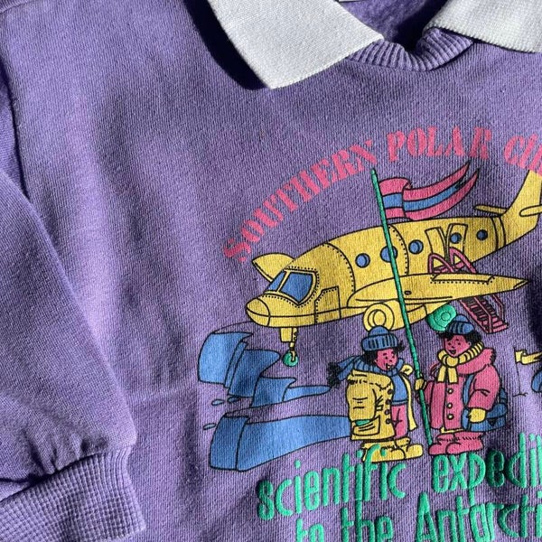 Lila sweater 90s met kraagje. Rond maat 92 98 104.