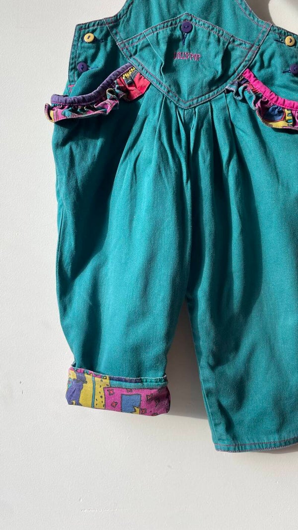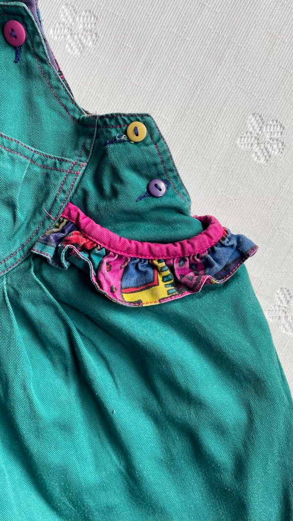 Fantastisch multicolor 90s tuinbroekje voor een kleintje rond 1 jaar. Volledig gevoerd.