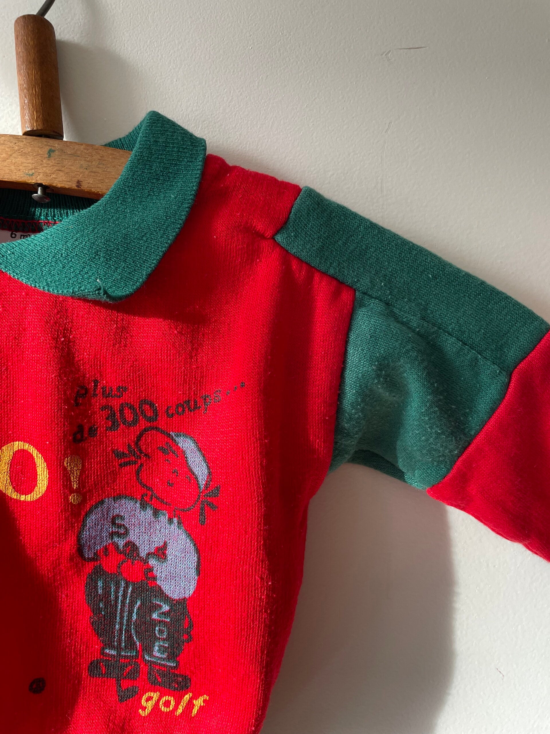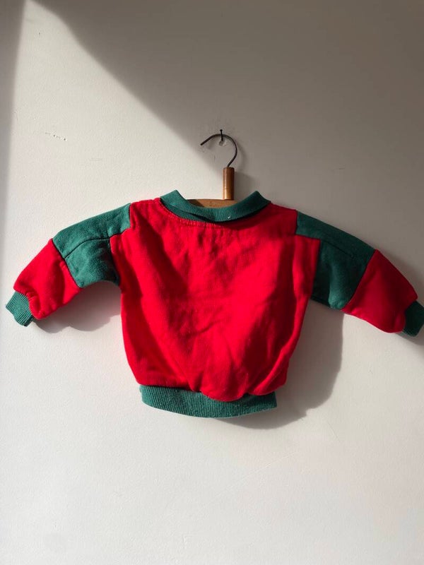Vintage truitje met kraag groen rood. 62