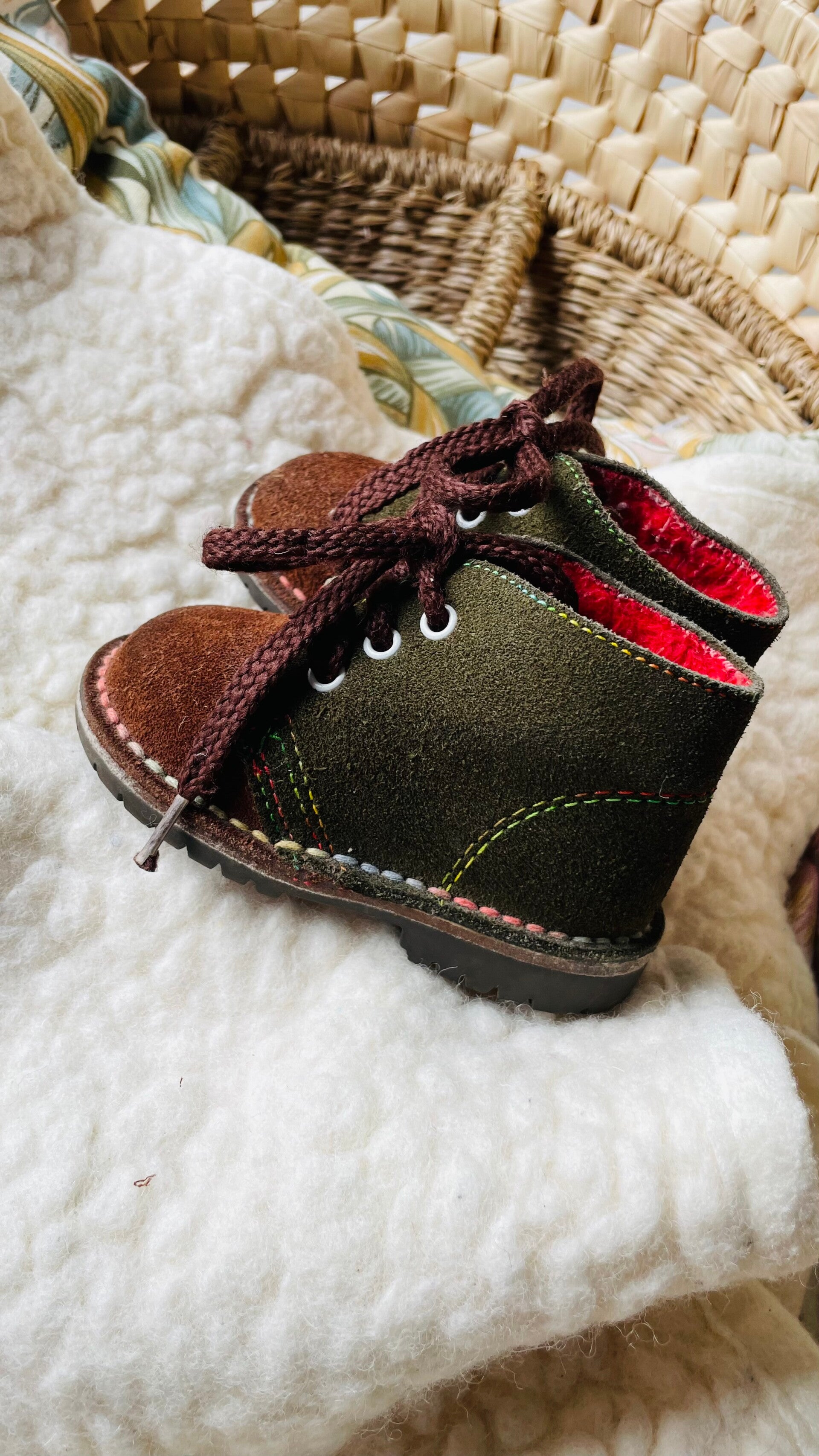 Schattige vintage baby schoentjes met rode voering.